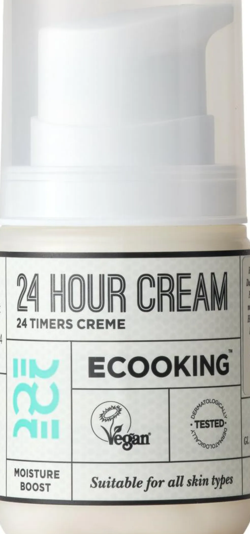 24 Timers Creme er en blanding af fugtgivende solsikke- og mandelolie, beskyttende E-vitamin og nærende sheasmør, der i fællesskab forkæler din hud med kærlig pleje. Cremen indeholder også naturlig Trylagen, som øger hudens kollagenproduktion, hvilket gør din hud mere smidig.