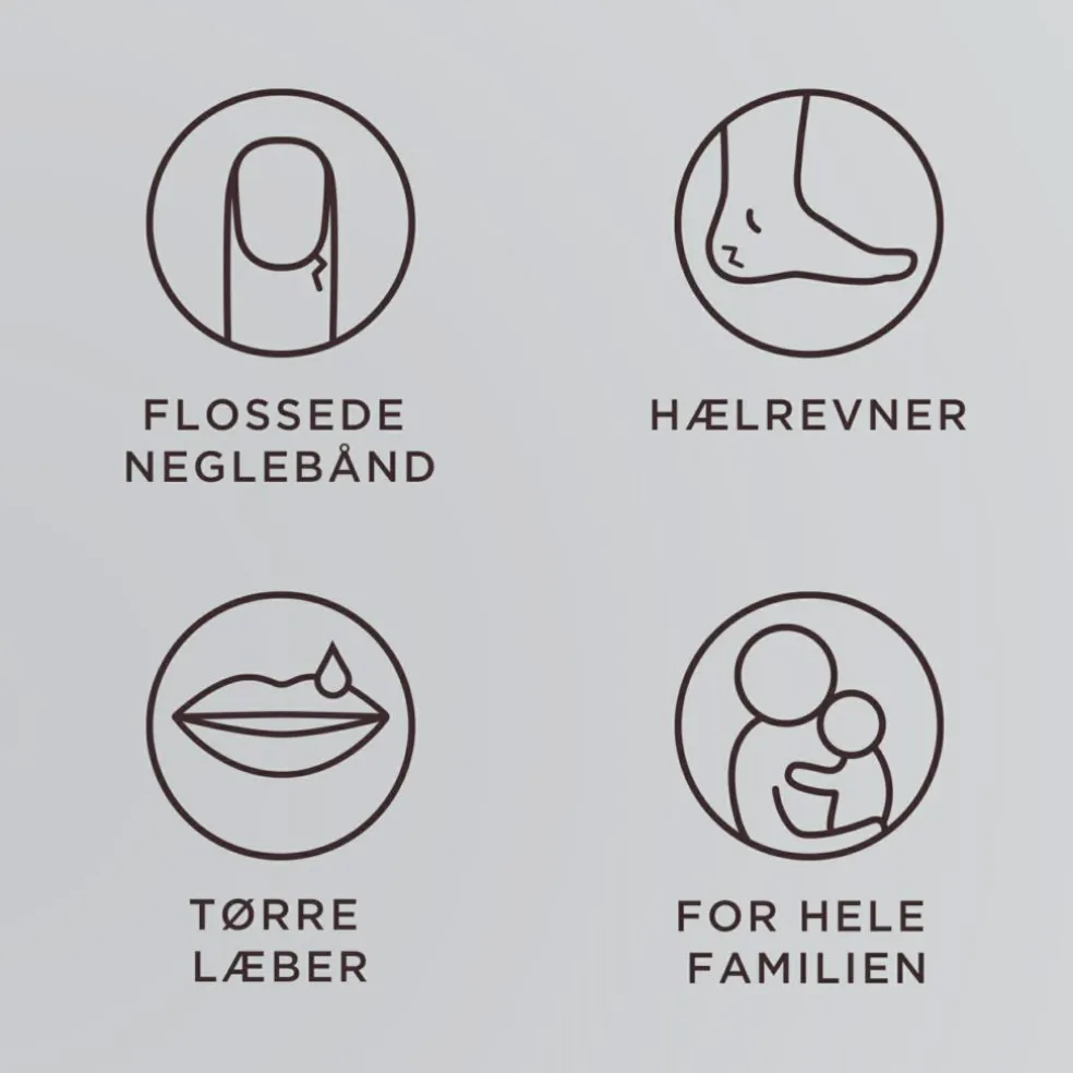 Cremen har et højt fedtindhold 57% og danner et beskyttende lag på tør, ru og skadet hud. Den virker desuden fugtgivende og beroligende på tør hud. Klinisk dokumenteret effekt understøtter hudens egen genopbygningsproces og styrker hudbarrieren.