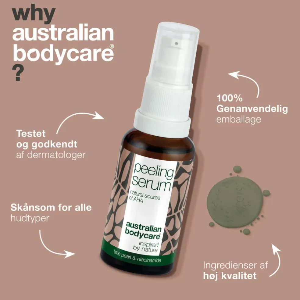 Peeling Serum er et effektivt peelingserum, der skånsomt fjerner døde hudceller og urenheder fra ansigtshuden et par gange om ugen. Peeling serum virker dybderensende på huden takket være de aktive naturlige ingredienser.
