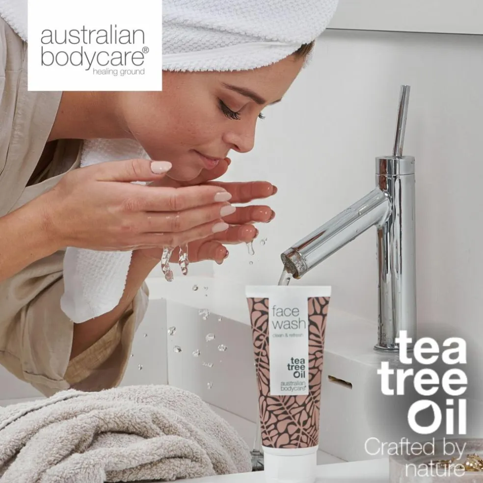 Ansigtsrensen indeholder bakteriemodvirkende Tea Tree Oil, som holder huden ren og sund, og som effektivt – men skånsomt – fjerner snavs og makeuprester.