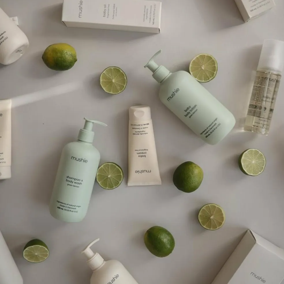 Mushie Baby Lotion Green Lemon 400 ml – Frisk og Nærende Hudpleje til Din Baby Giv din baby en forfriskende og nærende oplevelse med Mushie Baby Lotion Green Lemon – en skånsom lotion, der både fugter, plejer og beskytter dit barns sarte hud. Denne baby body lotion har en let og frisk duft af citron, som giver en behagelig oplevelse ved hver påføring, samtidig med at den sikrer optimal pleje for dit barns hud. Naturlige Ingredienser for Silkeblød Hud Mushie Baby Lotion Green Lemon er beriget med naturlige ingredienser, der giver huden den bedste pleje. Cremen indeholder sheasmør, kendt for sine dybt fugtgivende og beskyttende egenskaber, samt abrikoskerneolie, som hjælper med at blødgøre og nære huden. Disse ingredienser sikrer, at dit barns hud efterlades silkeblød, sund og velplejet. Frisk Duftsensation Den lette Green Lemon duft med en frisk citrusnote giver en naturlig og dugfrisk følelse på huden. Denne duftoplevelse kombinerer en fornemmelse af friskhed med den pleje, huden har brug for, og efterlader dit barns hud blød, hydreret og let duftende af citron. Daglig Pleje til Hele Kroppen Denne lotion er velegnet til daglig brug på hele kroppen. Den lette og hurtigt absorberende formel sikrer, at lotionen trænger hurtigt ind i huden uden at efterlade en fedtet overflade. Mushie Baby Lotion Green Lemon er ideel til både morgen- og aftenrutiner, hvor den tilfører langvarig fugt og efterlader huden med en skøn, frisk duft af citron. Fordele ved Mushie Baby Lotion Green Lemon Frisk duft: En let og behagelig duft af citron, der gør plejen endnu mere fornøjelig. Naturlige ingredienser: Indeholder sheasmør og abrikoskerneolie, som fugter og plejer huden. Velegnet til daglig brug: Perfekt til daglig påføring på hele kroppen for blød og sund hud. Hurtigt absorberende: Trænger hurtigt ind i huden og efterlader ingen fedtede rester. Særlige ingredienser at fremhæve i Mushie Baby Lotion Green Lemon Kokosolie (Cocos Nucifera Oil): Kokosolie har fremragende fugtgivende og plejeegenskaber. Den er god til tør, kløende og sensitiv hud, da den danner en beskyttende film på huden. Desuden har den gode absorberende egenskaber. Sheasmør (Butyrospermum Parkii Butter): Sheasmør er en koldpresset, raffineret og lugtfri vegetabilsk fedtstof, rig på umættede fedtsyrer. Sheasmør har et særligt højt indhold af oliesyre, som er meget gavnligt for meget tør hud. Sheasmør har derfor en udtalt fugtgivende og blødgørende effekt. Desuden er sheasmør rig på “non-glycerid” stoffer som fytosteroler, der minder om kolesterol og anses for at være gode fugtgivende og hudberoligende ingredienser. Rapsolie: Rapsolie er en nærende olie med et højt indhold af naturlig tocopherol (vitamin E), som beskytter mod frie radikaler og dermed oxidation. Rapsolie beskytter, beroliger og fugter huden. Glycerin: Glycerin forhindrer tab af fugt fra produktet, så det ikke tørrer ud. Derudover binder det fugt fra omgivelserne til huden, hvilket gør huden glat, fugtet og blødgjort. Glycerin opretholder hudens naturlige fugtbalancer. Vitamin E (Tocopherol): Vitamin E er en meget vigtig antioxidant, der beskytter mod frie radikaler. Vitamin E er et fedtopløseligt vitamin, der beskytter både produktet og huden mod frie radikaler.