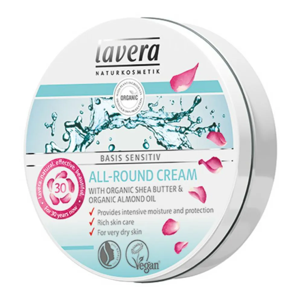 All-Round Cream Basis Sensitiv giver intensiv fugt, beskytter tør hud og efterlader den blød og smidig. Kan anvendes både til krop og ansigt.