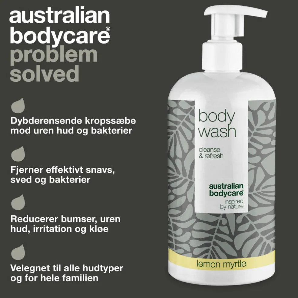 Body Wash med Lemon Myrtle til uren hud på kroppen, bumser på ryggen, ballerne og andre hudområder.