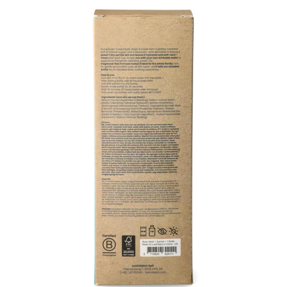 Du kan nemt blande pulveret med varmt vand fra egen vandhane i enten LastObject smukke flaske eller alternativt i din egen favoritdispenser, og på kun 30 min. have en lækker kropsæbe klar til brug.