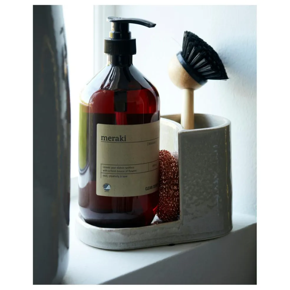 Opbevar dit opvaskemiddel og opvaskebørste sammen i denne tidløse og minimalistiske holder ved navn Datura. I stedet for at have dine genstande liggende løst omkring ved køkkenvasken, samler du dem her ét sted. Det gør det nemmere for dig, når du skal rydde op og gøre rent – og det ser simpelthen mere stilfuldt ud, når køkkenet er ryddeligt. Holderen fra Meraki er lavet af lertøj og har fået en grålig glasur, der bidrager til den afslappede og naturlige atmosfære i dit køkken.