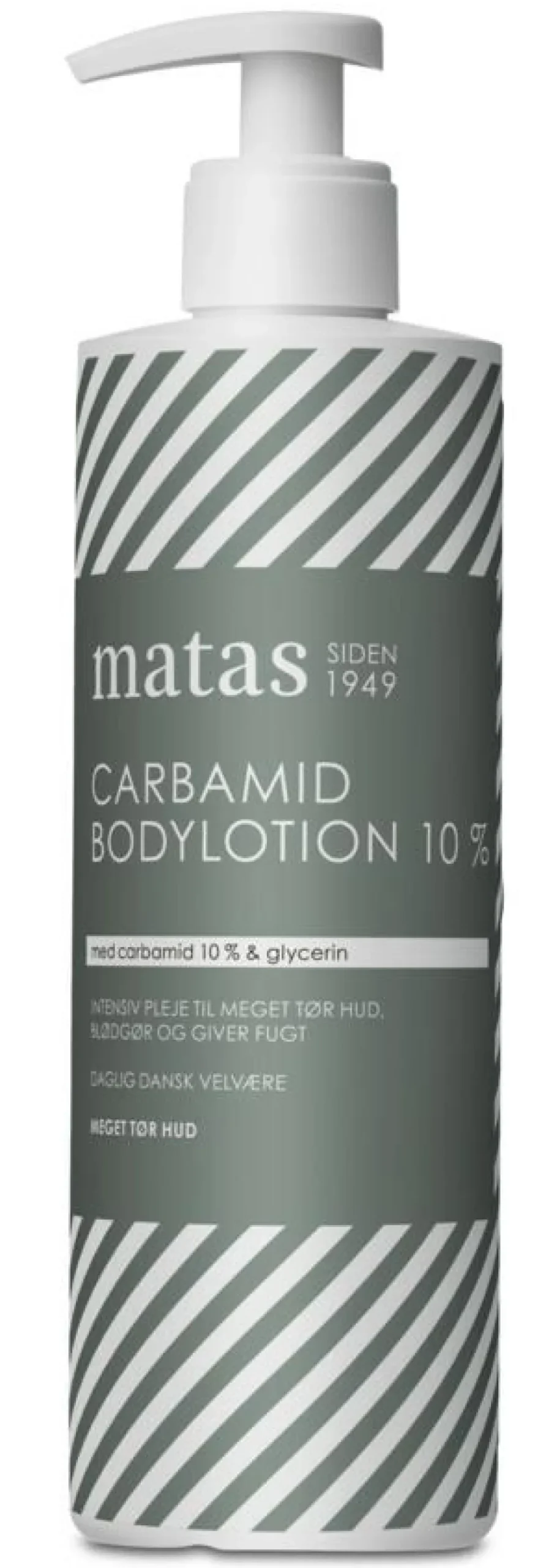 Især i vinterhalvåret har vores hud tendens til at blive tør, fortykket eller hård. Her er det særligt vigtigt med en fugtaktiv lotion til at bløde huden op med. Matas Carbamid Bodylotion 10% er rig på carbamid, der virker opblødenende på den hårde og tørre hud. Indholdet af glycerin bevarer effektivt fugtigheden i huden, så den fremstår velplejet og blød efter brug.