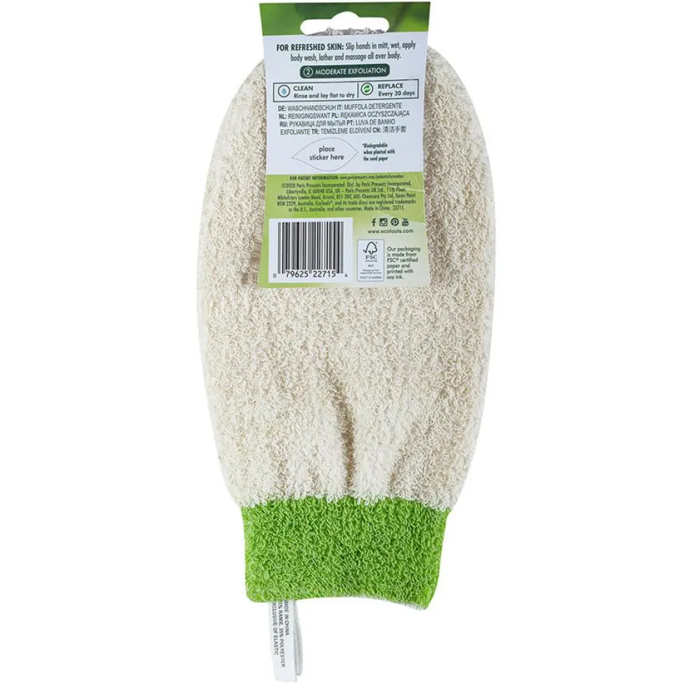 Tag handsken på hånden, hold den under varmt vand og tilføj din favorit kropsrens. Skum op og masser over hele kroppen.