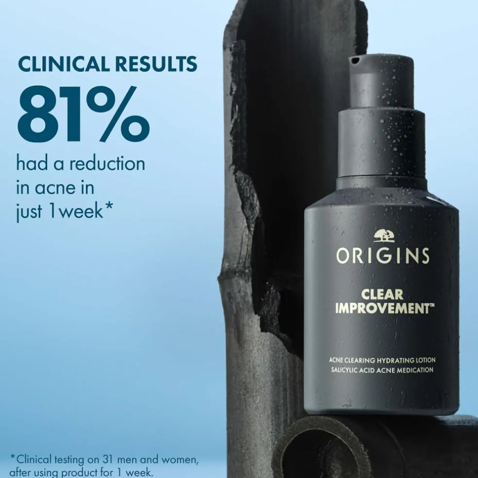 Origins Clear Improvement Acne & Blackhead Clearing Hydrating Moisturizer Lotion er en effektiv fugtighedscreme med salicylsyre, der bekæmper hudorme, tørhed og synlig rødme. Cremen giver intens fugt uden at tilstoppe porerne og hjælper med at bevare en sund og balanceret hud.