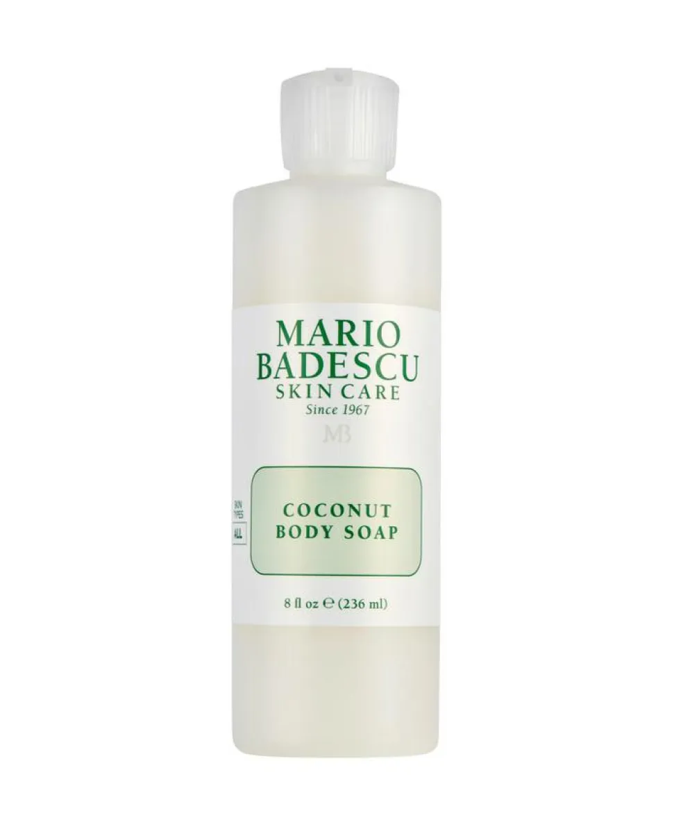 #MBSKINTIP: Skum din krop med Coconut Body wash i bruseren eller tilsæt det til et badebad for strålende, smidig hud. Påfør derefter en cocktail af Mario Badescu Coconut Body Butter og Coconut Body Oil for et ekstra boost af hydrering på nyvasket hud.