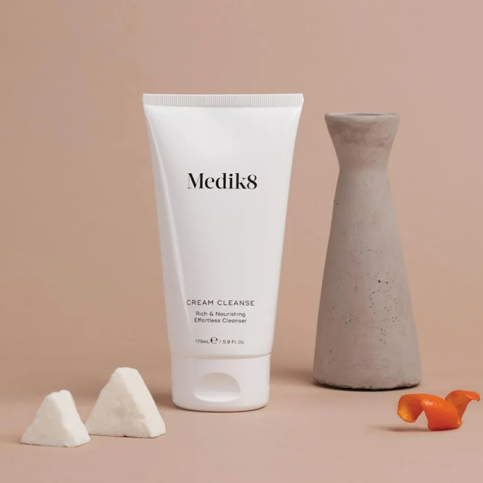 - SHEASMØR: Medik8’s sheasmør er 100% naturligt. Sheasmør er et kraftigt blødgørende middel, der opløser makeup og snavs. Det nedbryder alle spor af genstridige urenheder på huden og er også dybt nærende.