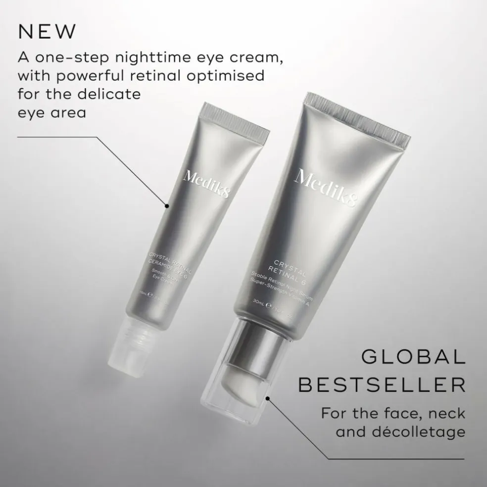 Inspireret af Medik8’s banebrydende A-vitaminserum Crystal Retinal indeholder denne specialiserede øjencreme en optimal koncentration af den aktive ingrediens retinal, som reducerer alle tegn på ældning.