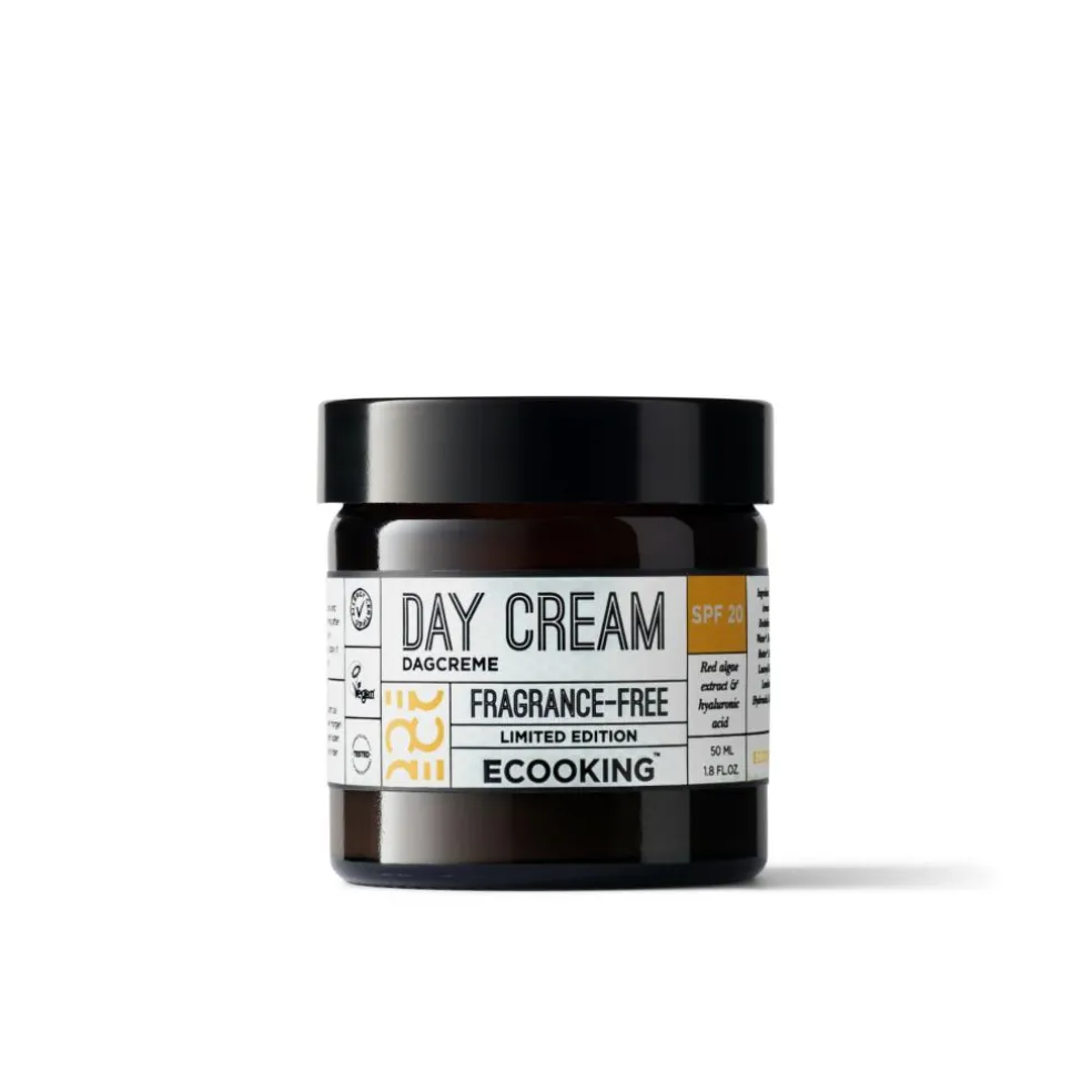 Dagcreme SPF 20 indeholder flere af vores yndlingsingredienser, såsom fugtgivende hyaluronsyre og beskyttende E-vitamin, samt to kemiske solfiltre til at værne din hud mod solens UVA- og UVB-stråler. Cremen stimulerer også hudens kollagenproduktion med rødalge- og græskarkerneekstrakt, der begge er rige på mineraler og vitaminer, som styrker, fugter og beskytter huden.