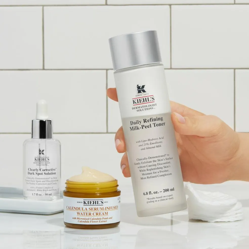 Milk-Peels lave syreindhold opretholder hudens naturlige fugtbalance, mens den eksfolierer hudens barriere. Det lave indhold af syrer gør Kiehl’s blide milk-peel toner velegnet til daglig brug.