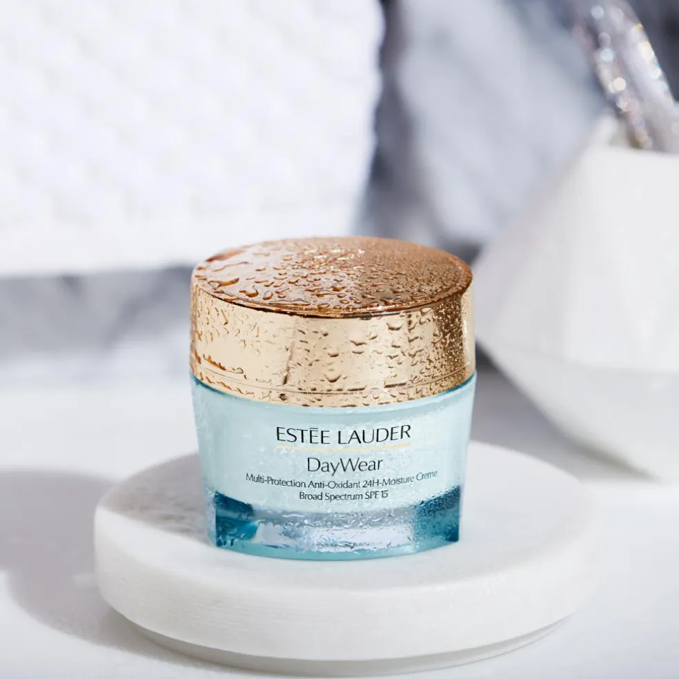 DayWear indeholder Estée Lauders dokumenterede Super Anti-Oxidant Complex og bredspektret SPF 15. Den reducerer de første alderstegn, som trist hud og fine, tørre linjer. Ansigtscremen beskytter din hud mod solens stråler og daglige miljøpåvirkninger for at forebygge skader og tegn på for tidlig ældning. 96% af kvinderne sagde, at deres hud øjeblikkeligt føltes glattere, friskere og sundere.** Ansigtscremen til normal/kombineret hud lindrer og blødgør huden.**