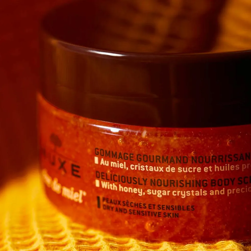 En luksuriøs bodyscrub med honning og sukker, der både eksfolierer og nærer huden.