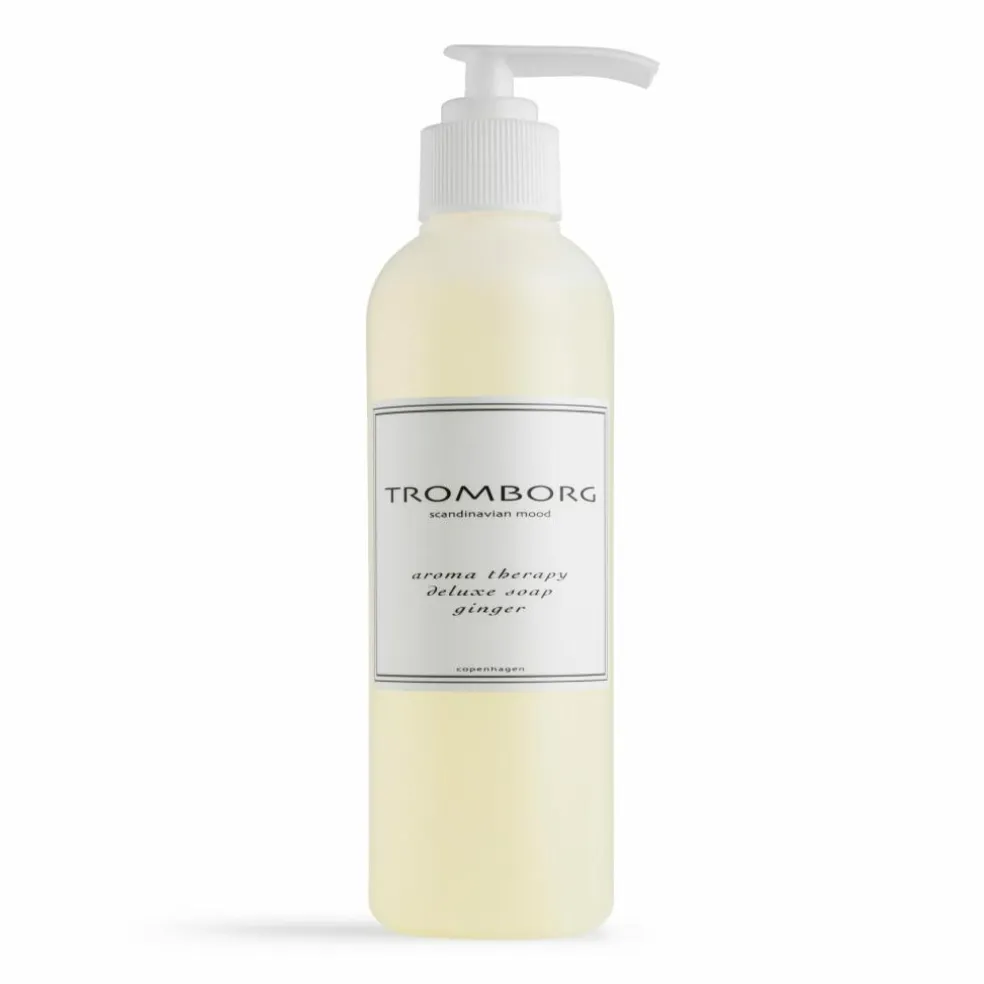 Tromborg TB Deluxe Handsoap Ginger 200 Ml er en delikat og velduftende håndsæbe med aromaterapi fra den skønneste, økologiske ingefær. Den blødgør, fugter og plejer hænderne, og giver en luksusoplevelse, der kan føles. Især i de kolde vintermåneder, hvor hænderne ofte bliver tørre og sprukne, er denne sæbe en sand velsignelse. Den varme, søde og træagtige duft af ingefær skaber en beroligende og opløftende stemning, perfekt til at modvirke vinterens mørke. Giv den som en skøn adventsgave, værtindegave eller julegave til én, du holder af.