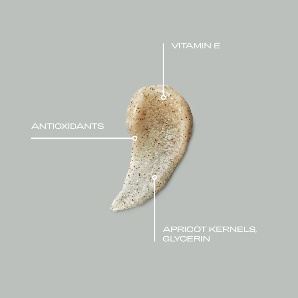 Små eksfolierende abrikoskernekorn fjerner blidt døde hudceller og urenheder fra huden og fremmer derved en sund glød. Huden vil føles eksfolieret, blød og glat.