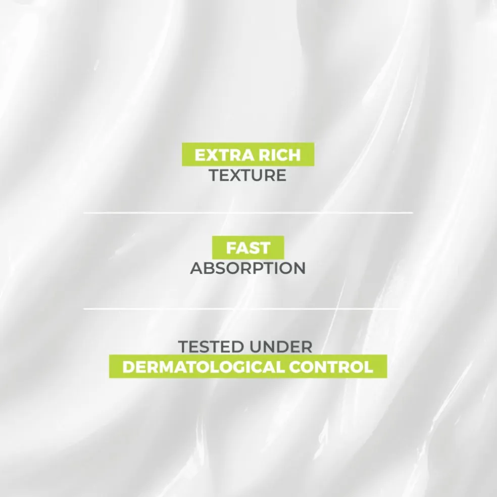 Formlen indeholder Rhealba® Havrekim ekstrakt, som bidrager til at genoprette hudens naturlige balance og dæmpe irritation, mens Filaxerin og vitamin B3 medvirker til at opretholde en sund og fugtet hud. Den rige, men ikke-klistrende tekstur gør den ideel til daglig pleje af tør, sensitiv eller atopisk hud, hvor den giver langvarig fugt og komfort med blot én påføring om dagen. Cremen er uden parfume og består af 95% ingredienser af naturlig oprindelse, hvilket gør den ideel til sart og reaktiv hud hos både børn og voksne Produktet kan anvendes på både krop og i ansigtet.
