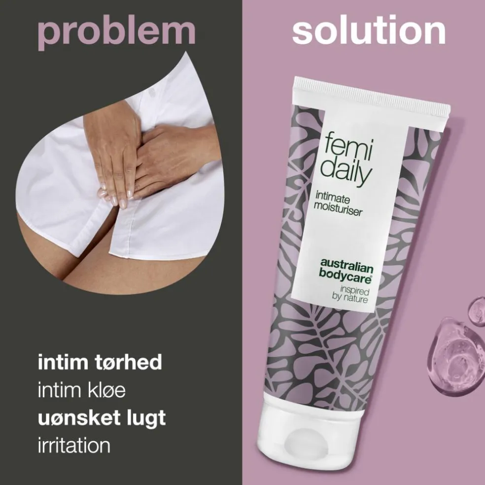 Femi Daily lindrer intime gener som kløe, uønsket lugt og tørhed omkring skeden og i det øvrige intimområde.