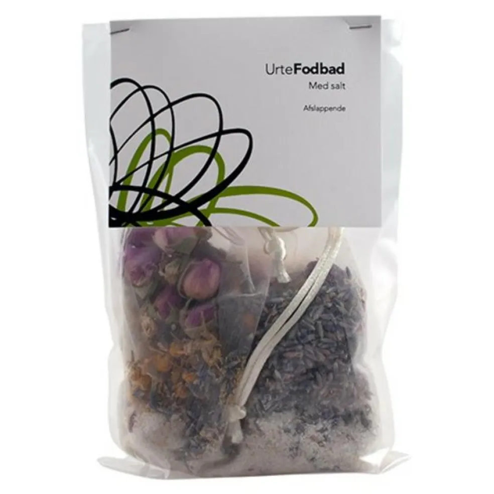 Læg posen i en balje og hæld varmt vand over. Det varme vand opløser nu saltet og trækker de virksomme stoffer fra urterne ud i vandet.