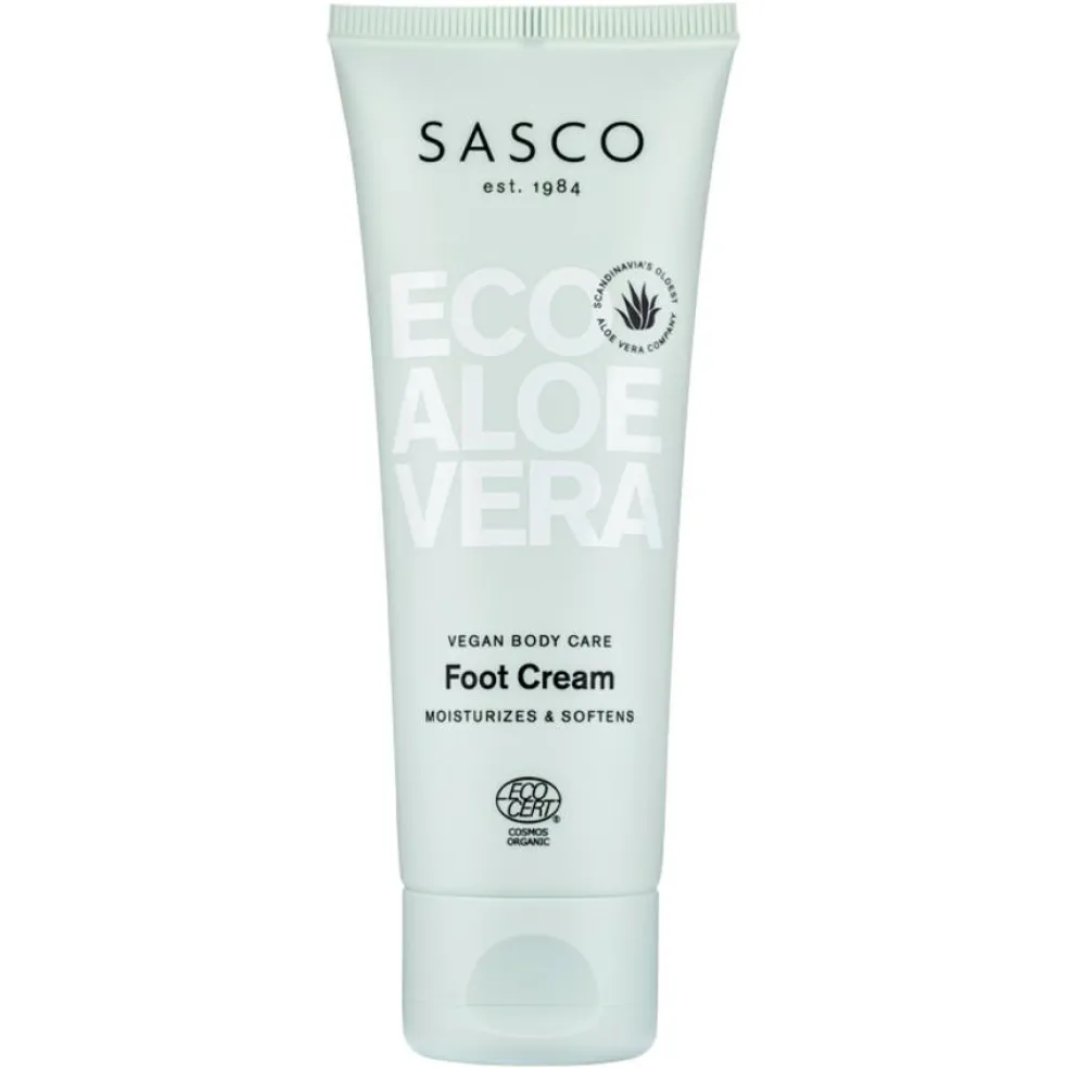 Sasco Foot Cream er en intensiv fodcreme, der blødgør tørre fødder. Sasco fodcreme indeholder solsikkevoks, avocadoolie og økologisk aloe vera, der beskytter og fugter huden.