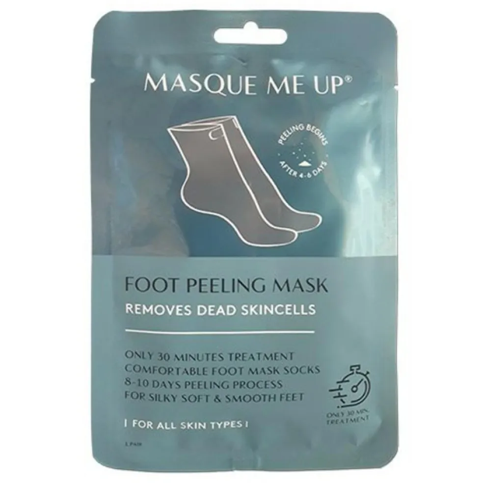 Denne vidunderlige peeling maske fjerner døde hudceller fra fødderne og kan bruges af både mænd og kvinder. Det unikke ved masken er, at den kun skal sidde på fødderne i 30 minutter for at opnå fuld virkning. Efter 4-6 dage vil de døde hudceller begynde at skalle af. De tilsatte aminosyrer beskytter og hjælper med at regenerere hudens celler, så fødderne fremstår sunde og friske. Masken består af et par sokker med aktivt serum indeni lige til at tage på.