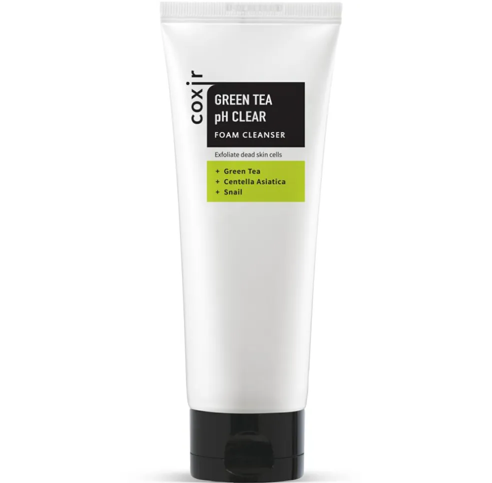 Green tea pH clear foam cleanser med grøn te, centella og snegl fjerner makeup og urenheder og beskytter samtidig hudens fugtbarriere.