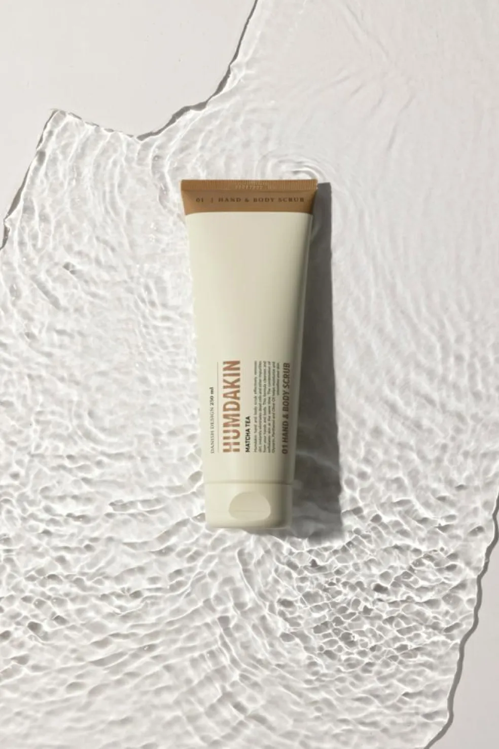Med naturligt matcha teekstrakt, kendt for sine antioxidanter og afgiftende egenskaber, er scrubben også beriget med olivenolie, glycerin og Panthenol for at tilføre huden intens fugt. De naturlige pimpstensmineraler fjerner effektivt døde hudceller og urenheder, så din hud efterlades blød og med en smuk glød.