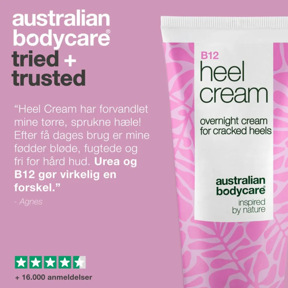 Lider du af tørre fødder, revnede hæle eller hård hud? Vores hælkrem med 25% urea og Vitamin B12 giver intensiv fugt og pleje til selv den tørreste hud.