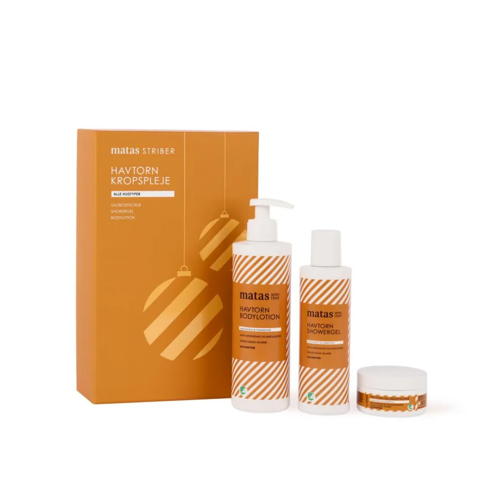 Matas Striber Havtorn Kropspleje Gaveæske er den perfekte julegaveidé, der spreder glæde og velvære i den kolde tid. Forkæl en du holder af – eller dig selv – med denne luksuriøse gaveæske fyldt med skøn kropspleje med en dejlig duft af havtorn.
