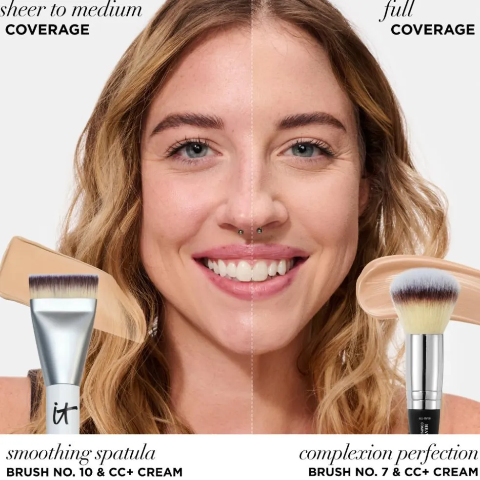 Med blot et par strøg kan du nemt opbygge en smuk let til medium dækning, samtidig med at du udglatter alle fine linjer, porer og skønhedsfejl. Desuden er det nemt at bruge din spatelbørste til at tilpasse din CC+ Cream-dækning og forvandle den fra den fulde dækning, du kender og elsker, til et tyndt lag opbyggelig dækning, der giver et glasagtigt look.