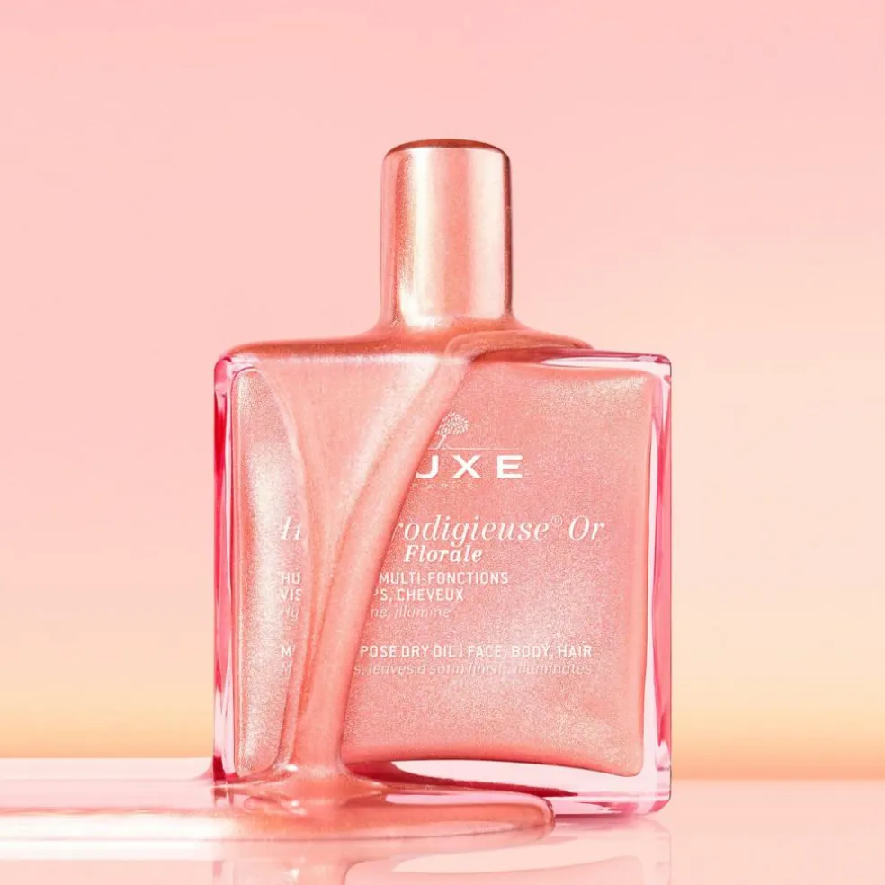 Plejer, efterlader en satinfinish og forskønner huden med en naturlig lysende effekt takket være de rosa guldglitter.