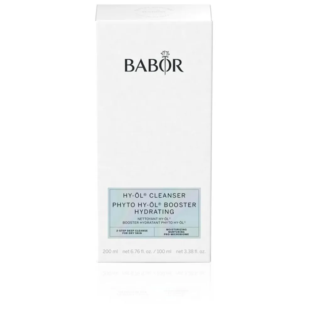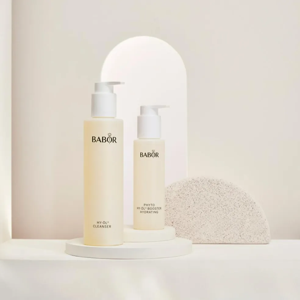 BABOR har kombineret den naturlige renseevne fra vand og olie og udviklet en revolutionerende tofaset dybderens, som har modtaget adskillige priser. Effektiv, skånsom rensning fremmer en intakt hudbarriere og et velafbalanceret mikrobiom. Denne særlige kombination af naturlige soja-, sesam- og jordnøddeolier af høj kvalitet har hydrofile egenskaber, som tackler alle typer olie- og vandopløselige snavspartikler og beskytter hudens naturlige lipidkappe. Med E-vitamin, bisabolol og Quillaja-ekstrakt, der virker som en magnet over for snavs. Sammen med hudplejeboosteren Phyto HY-ÖL® Booster, der er udviklet til den specifikke hudtype, næres og beskyttes huden mod negative miljøpåvirkninger. Resultatet er en glat, renset hud, der ikke efterlader følelsen af stramhed eller fedtede rester. Hudplejesupplementet til BABOR HY-ÖL® tofaset rens til dehydreret hud. Renseprocessen fremmer en intakt hudbarriere og et velafbalanceret mikrobiom. Udvalgte ekstrakter af rosmarin og økologisk birk revitaliserer huden. Havreekstrakt, glycerin og polysakkarider er fugtgivere. Proteinekstrakt fra moringafrøene beskytter huden mod negative miljøpåvirkninger. Den forfriskende duft skaber et særligt forfriskende øjeblik. Resultatet er en rosenfrisk og mærkbart blødere hud, der er renset helt i dybden.