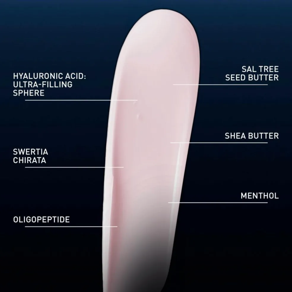 Denne avancerede læbebalm er inspireret af æstetiske injektioner og kombinerer tre kraftfulde ingredienser – hyaluronsyre, konjac og oligopeptid – for at give øjeblikkelig volumen, dybdegående fugt og forfinet læbekontur. Formlen er beriget med ekstrakt af Swertia chirata for mindske synligheden af linjer, sheasmør for at blødgøre og mentol som giver en forfriskende følelse.