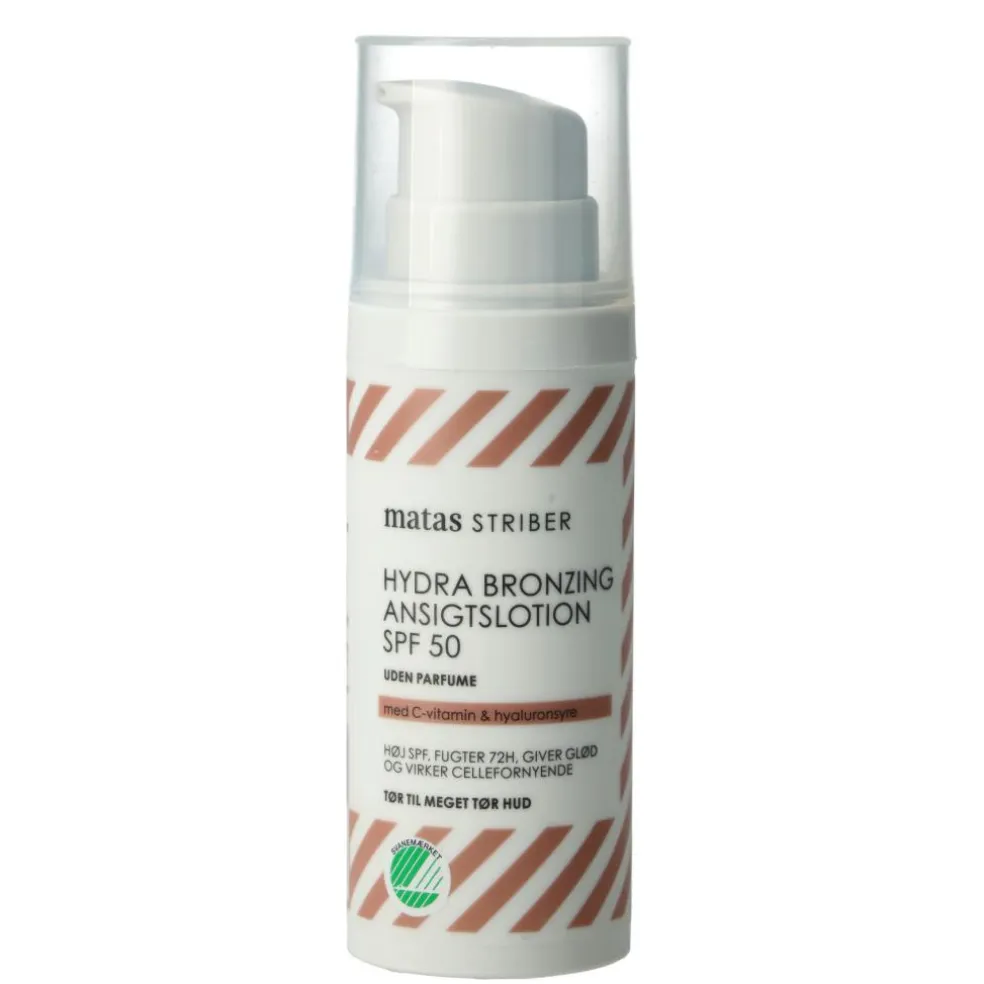 En ansigtslotion med høj solbeskyttelse og bronzing-effekt. Ansigtslotionen har et naturligt brunt pigment, som giver huden glød. Desuden indeholder lotionen bl.a. glycerin, der beroliger og modvirker udtørring af huden.
