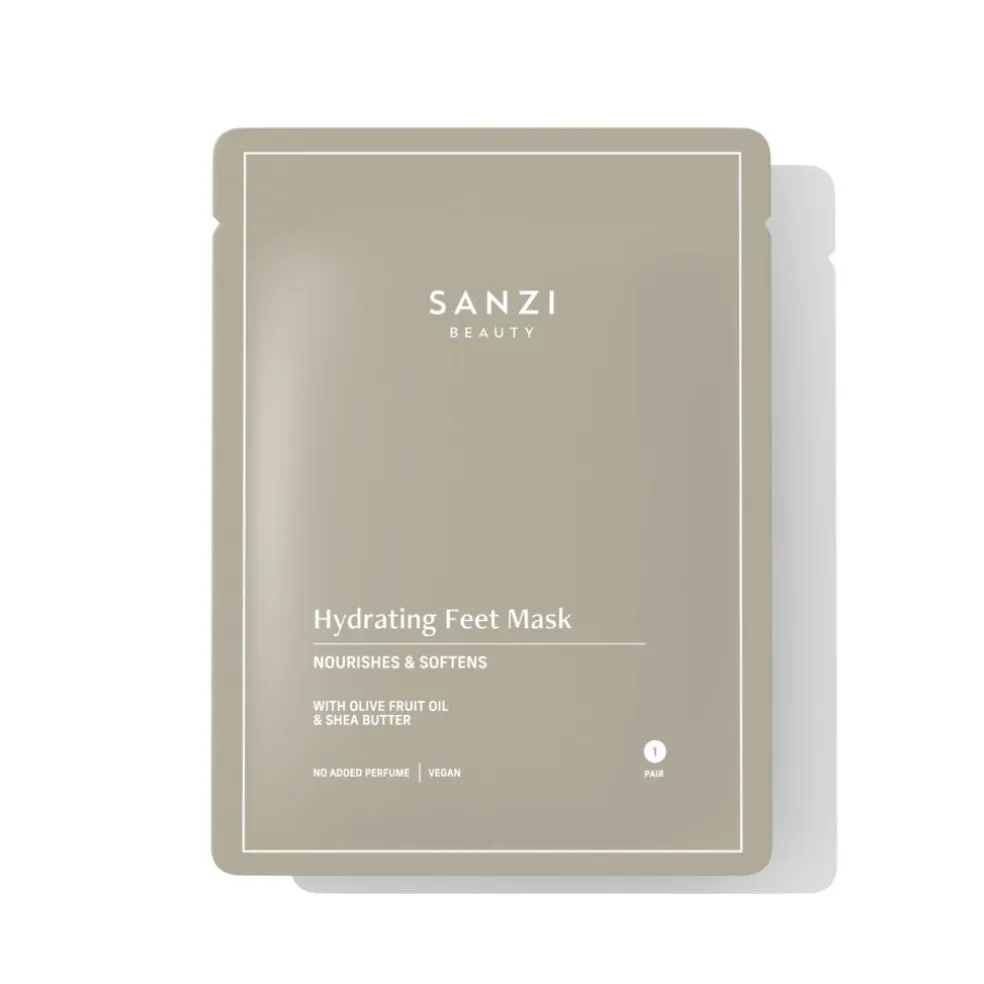 2. Åbn Hydrating Feet Mask, adskil de to masker, og åbn toppen af hver maske.Placér dine fødder i maskerne og sikre dem med det klistrende stykke.