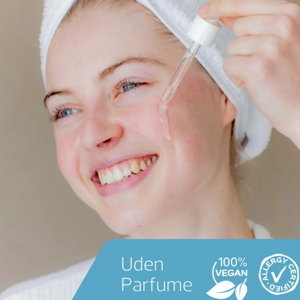 Denne fugtgivende ansigtsserum giver en øjeblikkelig, dyb og langvarig fugtgivende effekt. Dermatologisk testet på sensitiv hud.