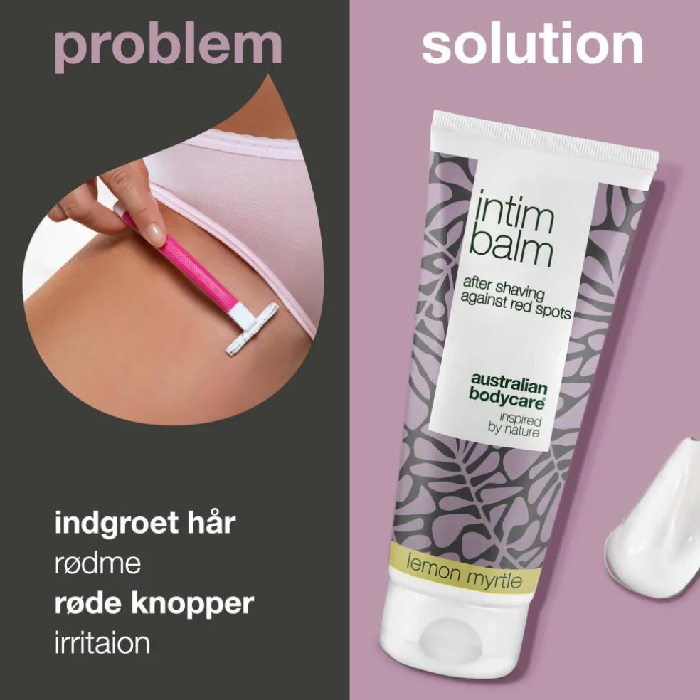 Intim Balm minimerer forekomsten af røde knopper efter barbering og beroliger huden efter hårfjerning.