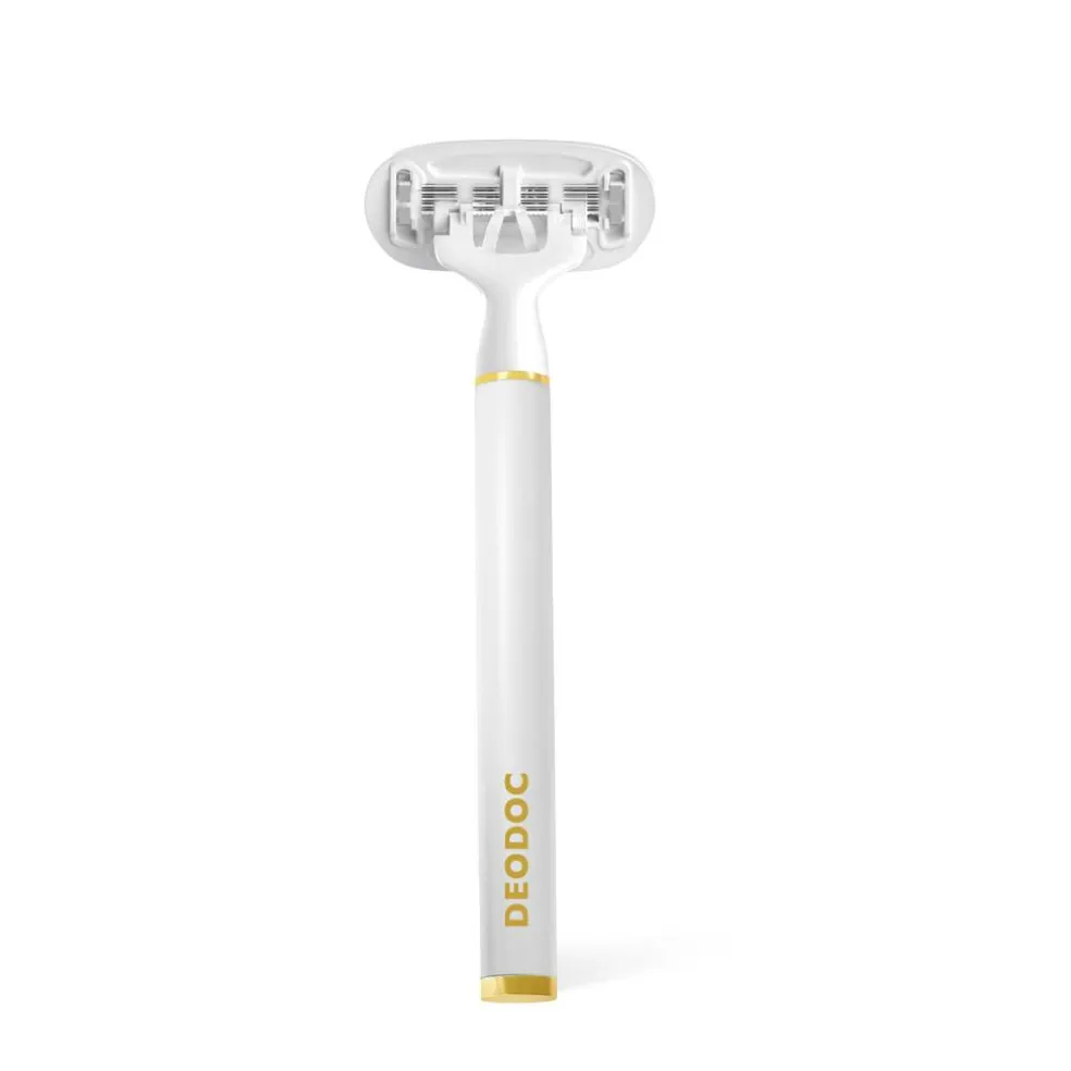 KIT indeholder 1 stålhåndtag (hvid) og 3 magnetiske barberblade.