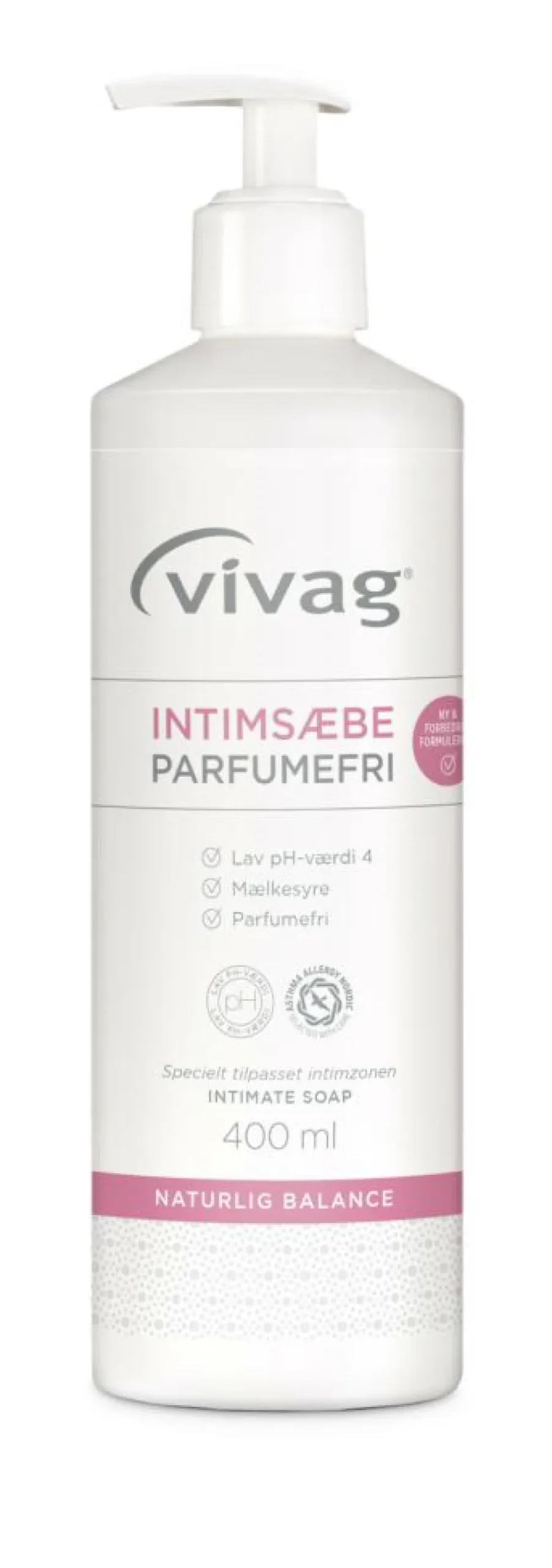Vivag parfumefri intimsæbe har fået ny formulering, som giver sæben en fyldigere konsistens samtidig med at de velkendte egenskaber af Vivag intimsæbe bibeholdes.