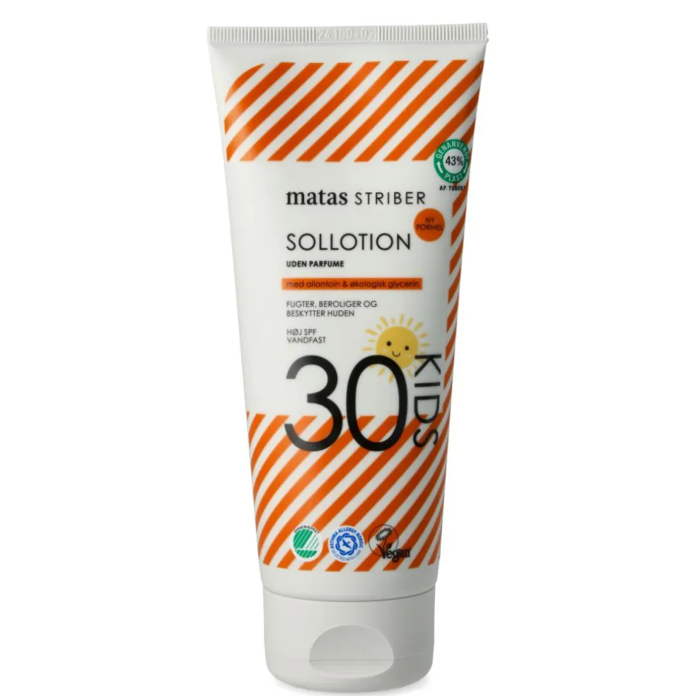 - Hvis du får sollotion på tekstiler, er det vigtigt, at du – inden nogen form for pletfjerning – følger vaskeanvisningen, som du finder på matas.dk/pletfjerning.