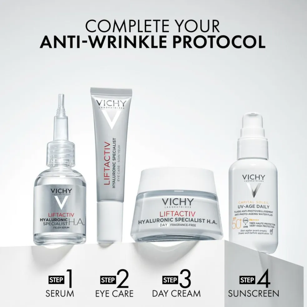 Hyaluronsyre bidrager med fugtighed. Rynker og fine linjer bliver mindre synlige.