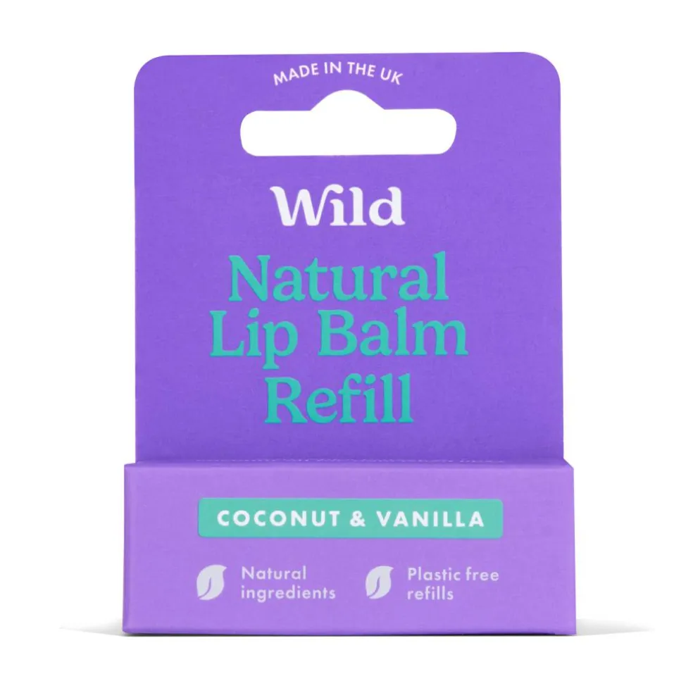 Lip Balm refill Coconut & Vanilla er en refill til Wild aluminiums etui og er 100% plastfri. Kan kastes i papiraffaldet.