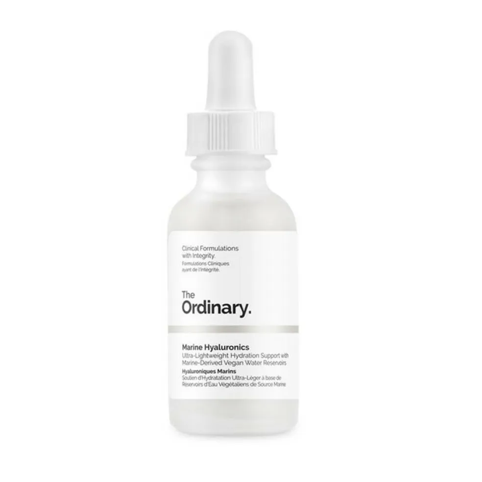 Marine Hyaluronics indeholder lette fugtkilder udvundet fra havet, som binder vand ligesom hyaluronsyre (HA), men hvis konsistens og følelse er lettere end HA.