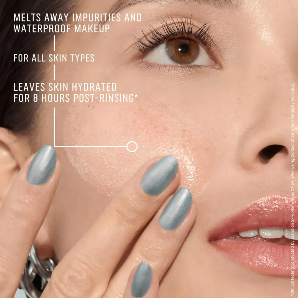 Lavet med beroligende ekstrakt af jasminblomster (hentet direkte i Frankrig), fugtgivende kukuinøddeolie og en blanding af italiensk olivenolie og økologiske solsikke- og jojobaolier, så urenheder og makeup på hudoverfladen opløses, uden at huden føles stram eller tør.