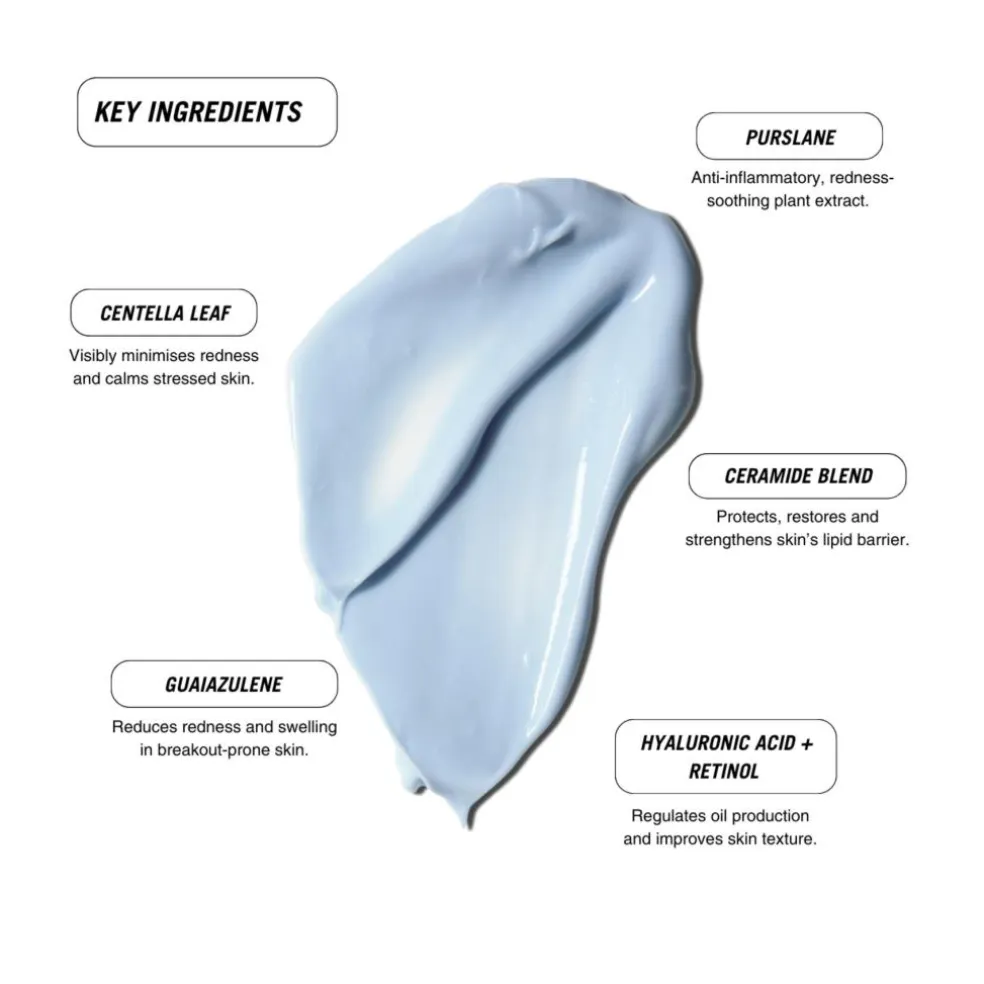 Nøgleingredienser: Centella Asiatica Ceramider Guaiazulene (blå kamille) Hyaluronsyre + retinol