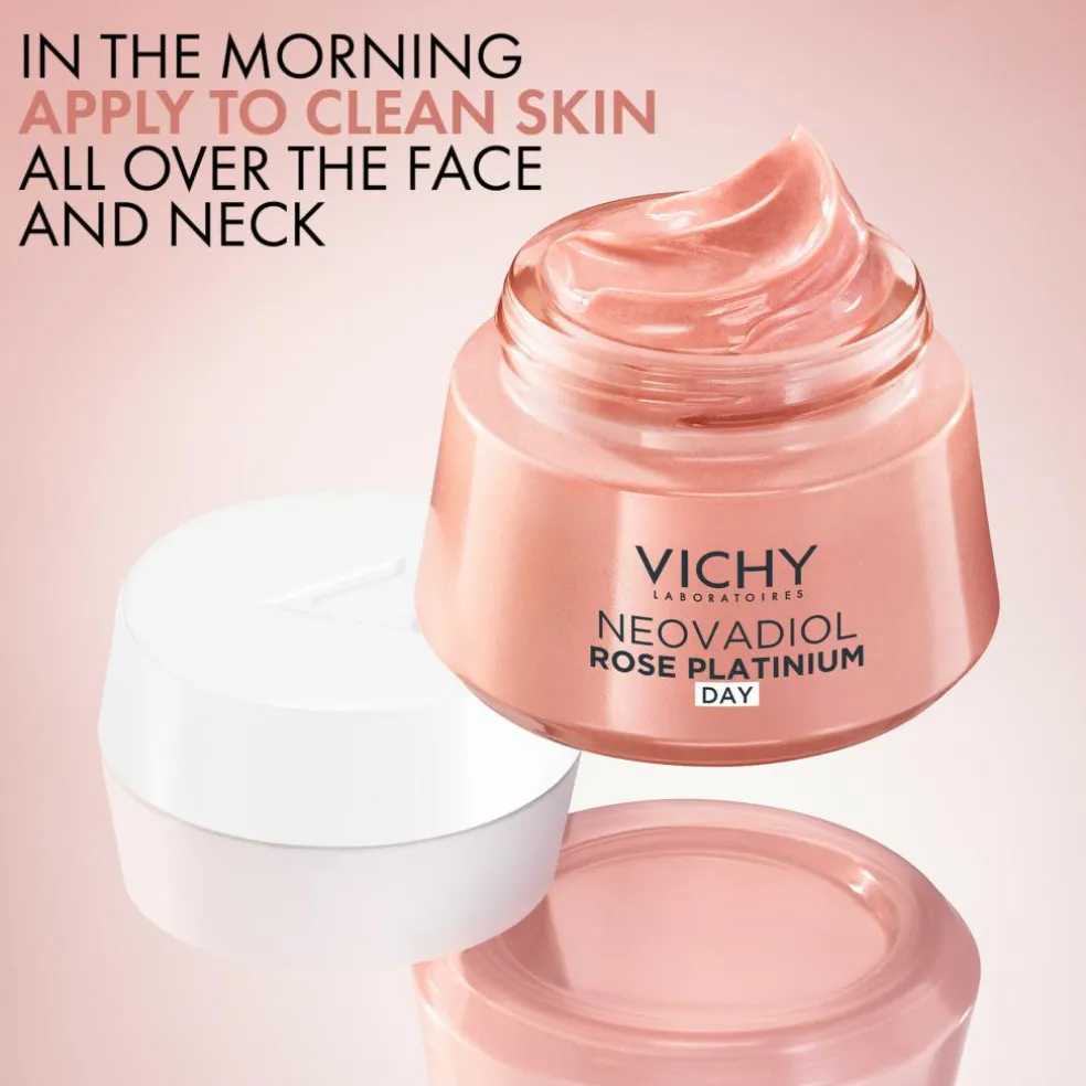 Med en formel, der virker fugtgivende i op til 24 timer** og føles behagelig på huden. Med sheasmør, bivoks, kalcium, Vichy termalsk kildevand og rosa pigmenter for en øget glød.