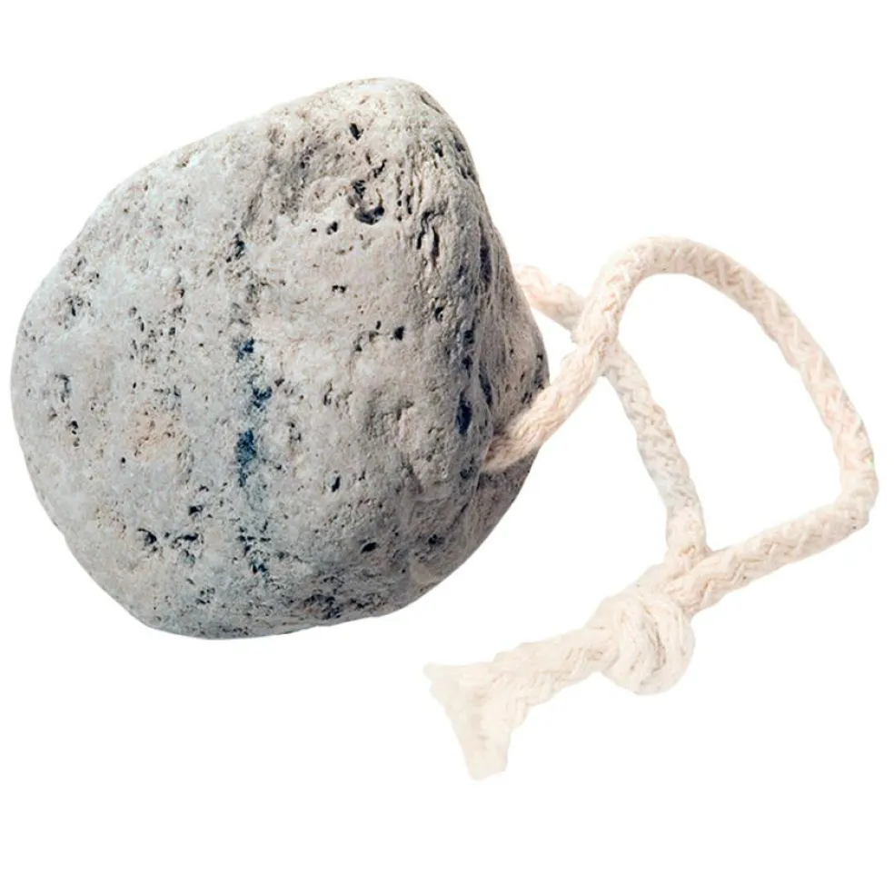 Ægte vulkanisk sten fra Grækenland, der er super god til at fjerne hård hud fra eksemplvis hælene. Stenen kommer i snor, så du let kan hænge den på badeværelset.