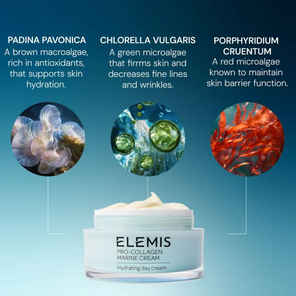 Vores ikoniske og prisvindende dagcreme er klinisk bevist til markant at reducere synligheden af fine linjer og rynker på blot 2 uger, samtidig med at den giver huden 24 timers intens fugt*. Formuleret med kraftfulde marine- og planteaktive ingredienser – herunder vores fugtgivende alge Padina Pavonica, Chlorella og Porphyridium Cruentum – forbedrer Pro-Collagen Marine Cream hudens fasthed og tilfører øjeblikkelig fugt. Den lette gel-creme tekstur glider nemt over huden og efterlader en silkeblød finish, som er det perfekte underlag til makeup – uanset hudtype. Vores elskede blomster-musky duft løfter desuden sanserne.