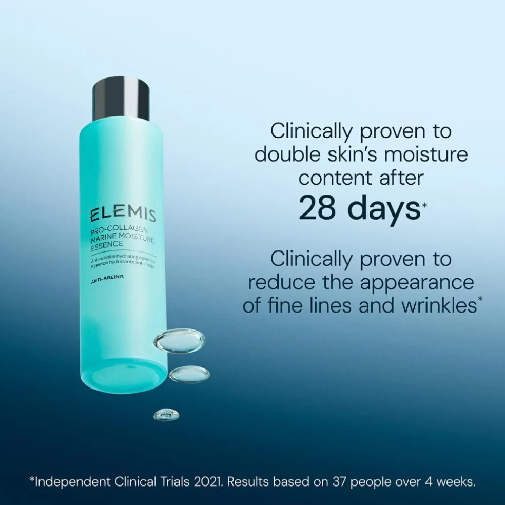 Beriget med en blanding af fugtgivende Padina Pavonica og mineralrig Sea Spring Water leverer denne dybt fugtgivende formel øjeblikkelig og intens hydrering, som varer i op til 24 timer.* Formuleret med næste generations Flash Filler Hyaluronsyre, er Pro-Collagen Marine Moisture Essence klinisk bevist* til at reducere synligheden af fine linjer og rynker for et glattere og mere ungdommeligt udseende. Den silkelette formel, gennemsyret af vores elskede floral-musk aroma, trænger hurtigt ind og forbereder din hud perfekt til de næste trin i din hudplejerutine.